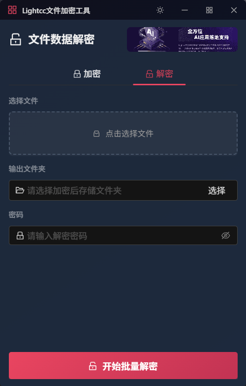 Lightcc 文件加密工具是一款简洁高效的本地文件加解密软件,支持批量操作,界面直观,适合个人或团队对敏感文件进行安全保护。